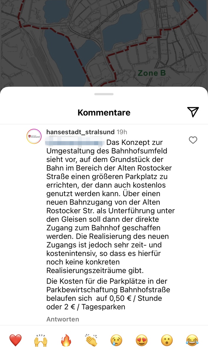 Die öffentlichen Verkehrsmittel zu nutzen wird damit wieder einen Schritt unattraktiver, obwohl doch jeder momentan auf den Zug aufspringt die Umwelt retten zu wollen. Auf dem offiziellen Instagram Kanal der Stadt Stralsund wird die Parkplatzgebühr damit begründet, dass irgendwann ein kostenloser Parkplatz auf der anderen Seite der Bahnschienen mit Unterführung entstehen soll. So sieht es das neue Bahnhofskonzept vor.