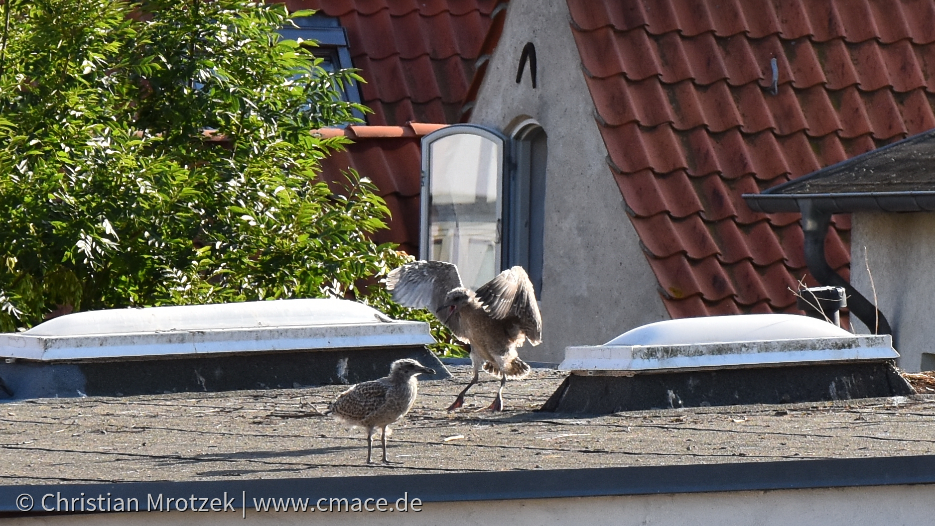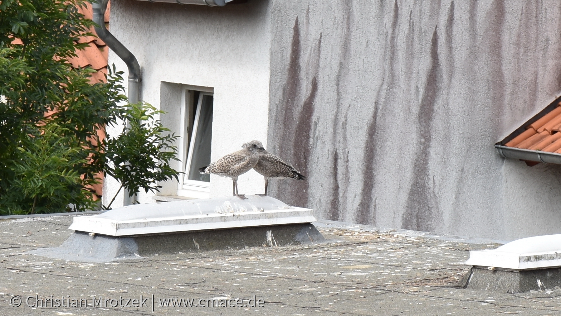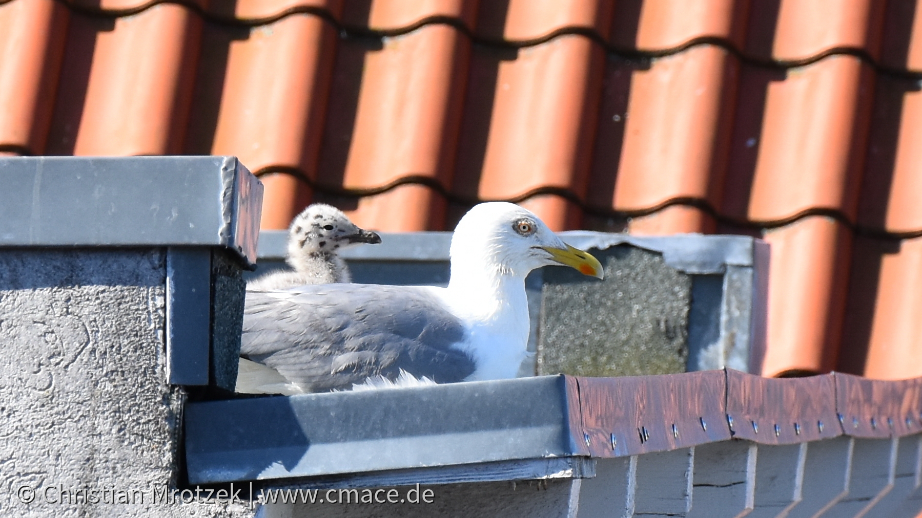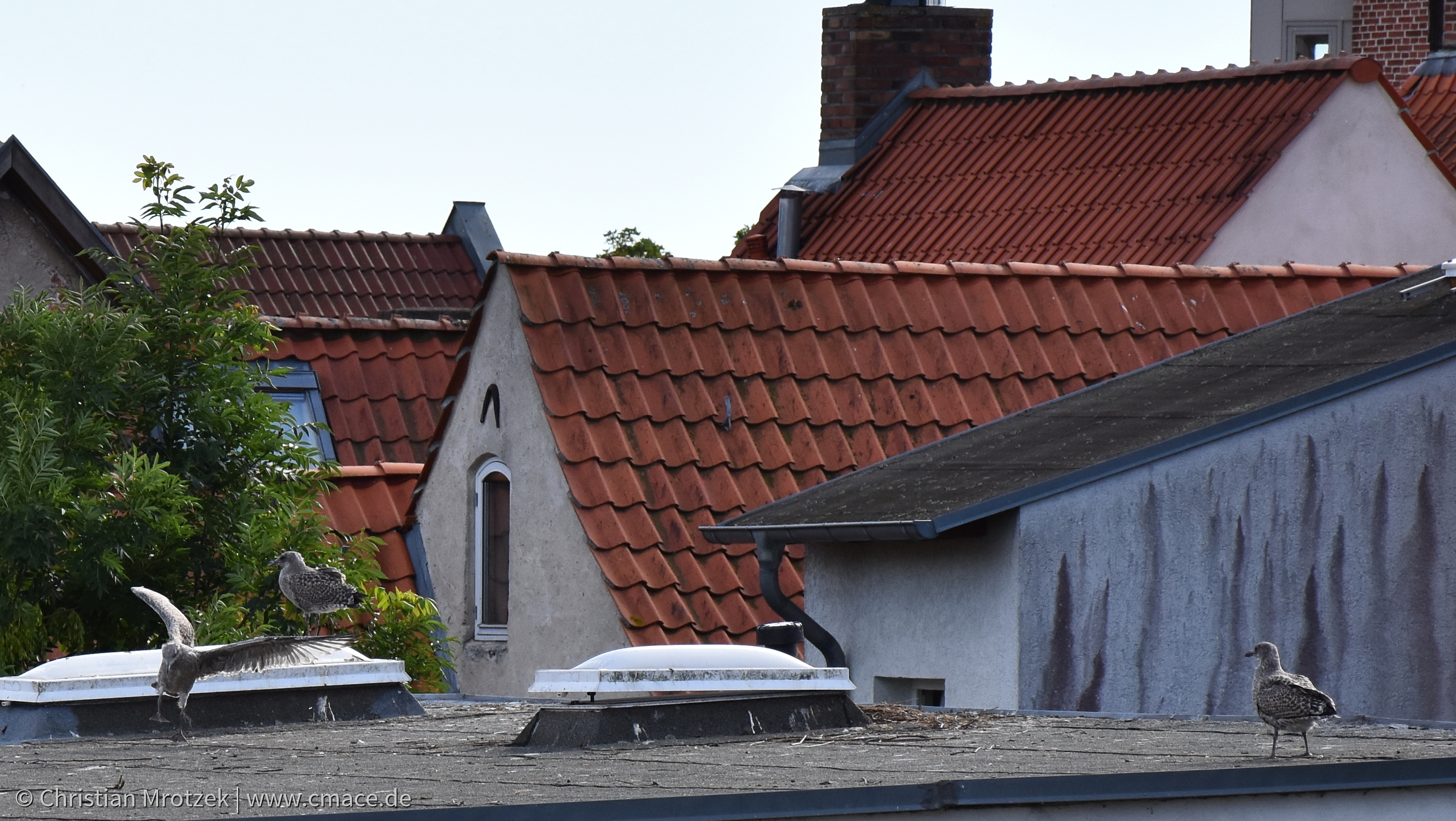 Möwen bei der Brut und Aufzucht in der Altstadt Stralsund