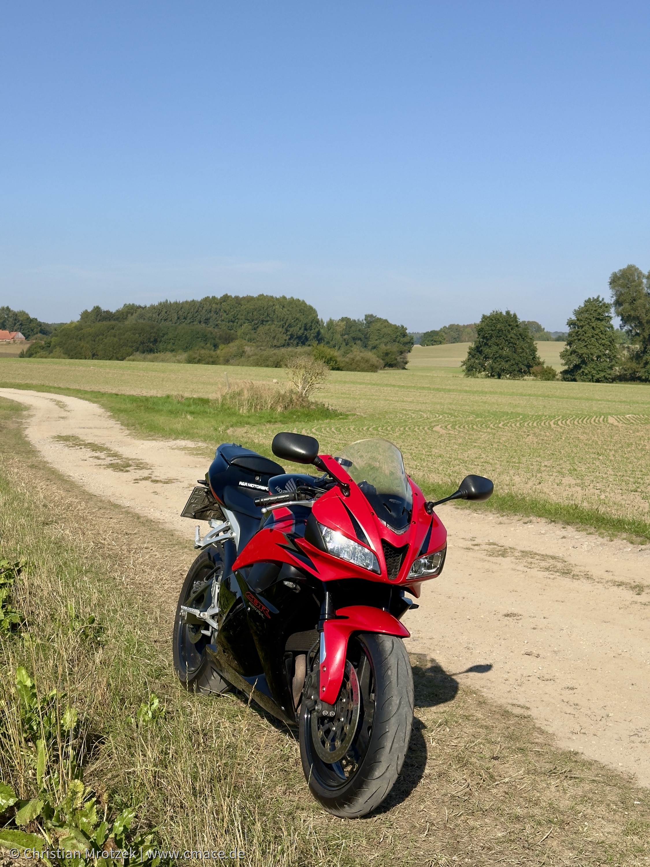 Die CBR 600 RR ist nicht gerade bekannt für bequeme Ausfahrten und viel Gepäck. Es ist eine Supersportler und daher sehr schnittig und leicht konzipiert. Ein bisschen Gepäck lässt sich auf dem Sozius und dem Tank verstauen. Der Rest passt allerdings nur noch auf den Rücken. Lange Strecken mit Gepäck für mehrere Tage sind daher eher ungewöhnlich und unbequem. Dennoch bin ich in den vielen Jahren zweimal von Stralsund nach Sachsen gefahren mit der Maschine und zweimal nach Potsdam. Das waren bis heute auch meine längsten Touren, die ich direkt gefahren bin. An die Fahrt zum Sachsenring erinnere ich mich heute noch sehr gerne zurück. Ich hatte mich damals mit einem Freund dort zum MotoGP Wochenende verabredet, welcher aus der Schweiz angereist ist. Wir hatten etwa dieselbe Entfernung, nur aus unterschiedlichen Himmelsrichtungen. Die knapp 600km bin ich auf der Hinfahrt am Stück gefahren. Nach dem anstrengenden Wochenende hatte ich mich kurzfristig auf der Rückfahrt für einen Boxenstopp mit Übernachtung in Berlin entschieden. Eine ausführliche Beschreibung der Fahrt habe ich damals hier zusammengefasst.