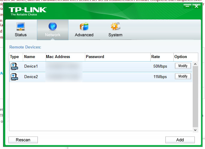 Ich gab mir also ein wenig mehr Mühe mit der schlechten Software mein Netzwerk abzuschotten. Den Desktop Rechner verband ich direkt nacheinander mit den drei Steckdosen und änderte den Netzwerknamen in ein mit pwgen erzeugten Netzwerknamen. Da vorher mein Netzwerk default konfiguriert war und mein Nachbar ebenfalls nichts änderte, befanden wir uns ab und zu wohl im selben Netzwerk. Und da sein DHCP Server schneller antwortete, bekam ich von ihm eine IP, statt von meinem Router.