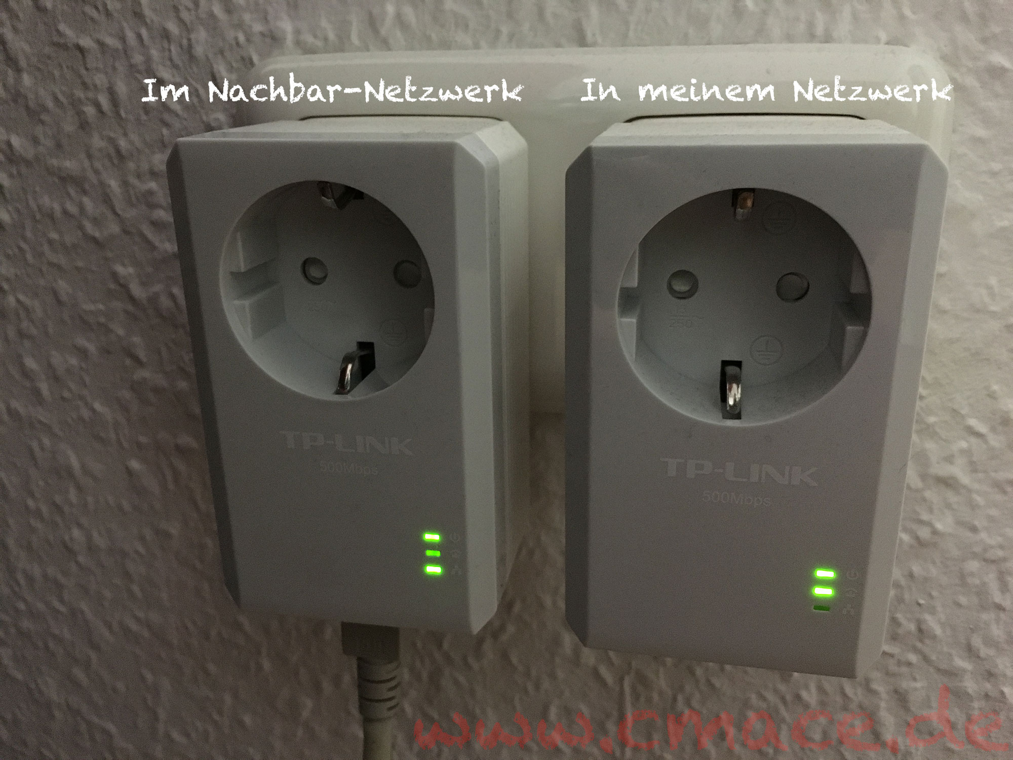 Und dann kam mir eine Idee! Ich habe im August 2014 ein dreier Pack DLAN Steckdosen gekauft. Damit verbinde ich meine Raspberry-Pi's in meinem lokalen Netzwerk. Was wäre, wenn irgendwer anderes im Haus ebenfalls PowerLAN nutzt und meine Steckdosen sich nun im Netzwerk des vermeintlichen Nachbarn befinden?