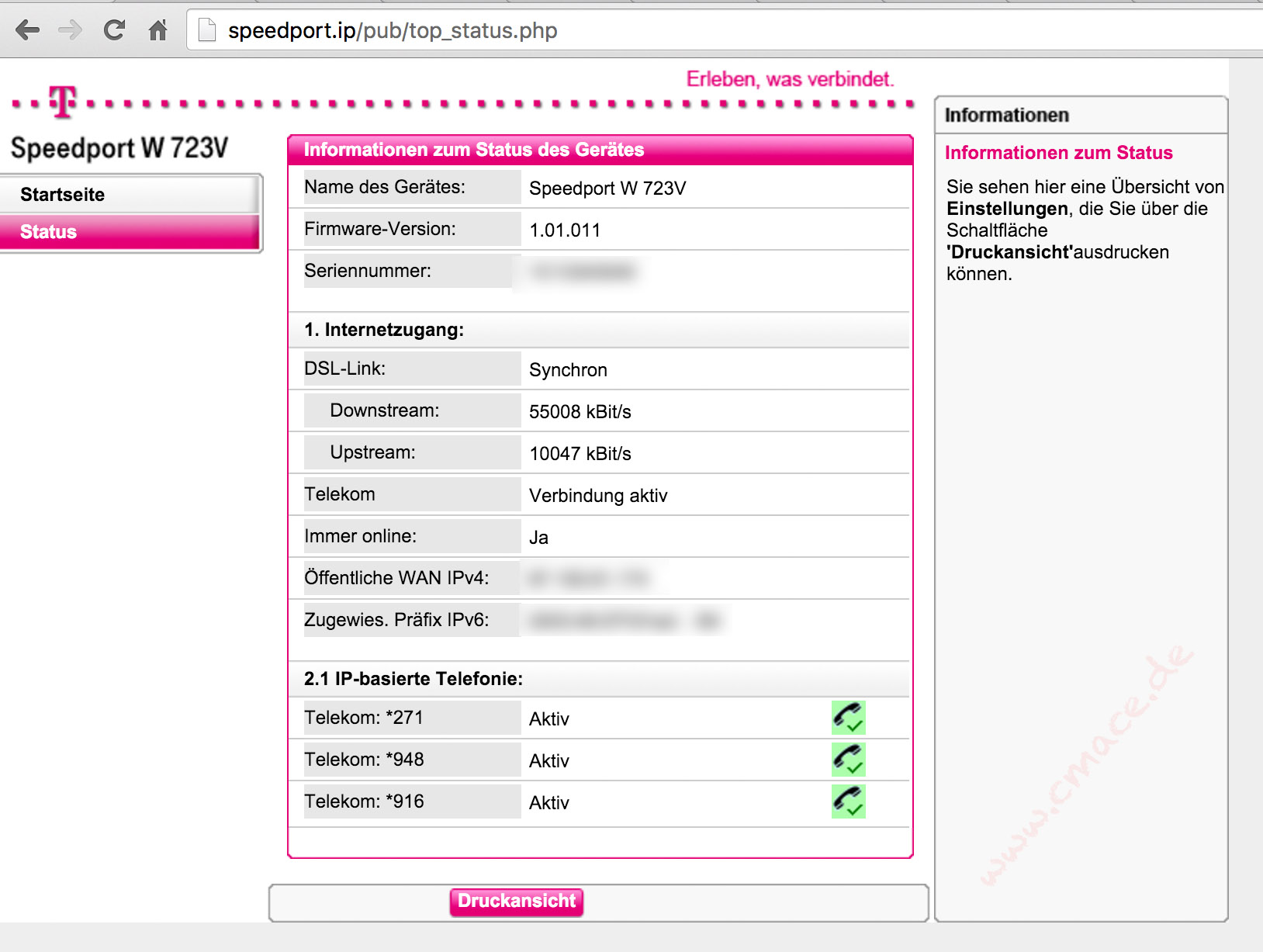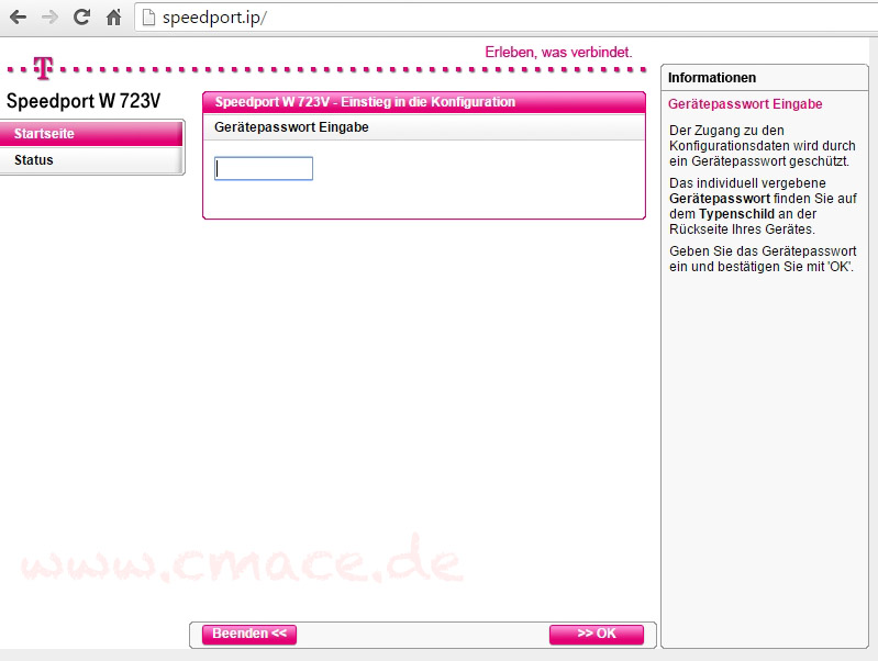 Also schaute ich mich in dem Netzwerk um und suchte nach anderen Geräten. Neben mir fand ich noch ein Gerät und den Router (Gateway). Per Browser versuchte ich die Weboberfläche des Routers zu öffnen. Wie bereits erwähnt habe ich einen openwrt Router und bin beim Anbieter Kabel Deutschland. Hier kam mir jedoch die Oberfläche von einem Speedport W723V entgegen. Hallo? Warum habe ich auf einmal einen anderen Router und bin Kunde der Telekom?