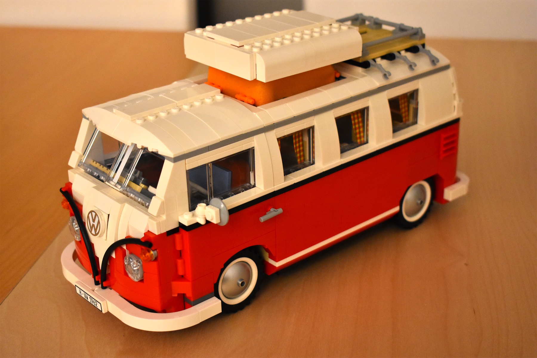 Nach zwei Tagen und knapp 6h Bauzeit ist der VW T1 Bus nun fertig. Ich bin erstaunt, wie gut die Anleitung von Lego geschrieben ist. Man kann eigentlich nichts vergessen und nichts verwechseln. Das einzig schwierige ist die Suche der Teile in den unsortierten Tüten. Der Detailgrad des Modells ist aus meiner Sicht unglaublich gut. Viele Teile im Inneren, die man eigentlich kaum sieht, sind frei beweglich und nutzbar. Von Außen ist ebenfalls viel Spielerei dabei. Die Türen vorn und hinten lassen sich öffnen, sowie die Kofferraumklappe und die Motorklappe. Das Dach lässt sich sogar noch nach oben erweitern.