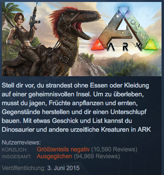 Hier steckt bei ARK zumindest ein eifriges Entwicklerteam dahinter, welche ständig nahe am Kunden das Spiel verbessern wollen. Der Preis dafür ist bei weitem gerechtfertigt. Ich selbst habe das Spiel im Sale für unter 20€ gekauft und habe inzwischen mehr als 350h auf der Uhr. Für andere Spiele habe ich da weitaus mehr Geld ausgegeben und hatte weniger Spielzeit, bis das Game eingestaubt wurde.