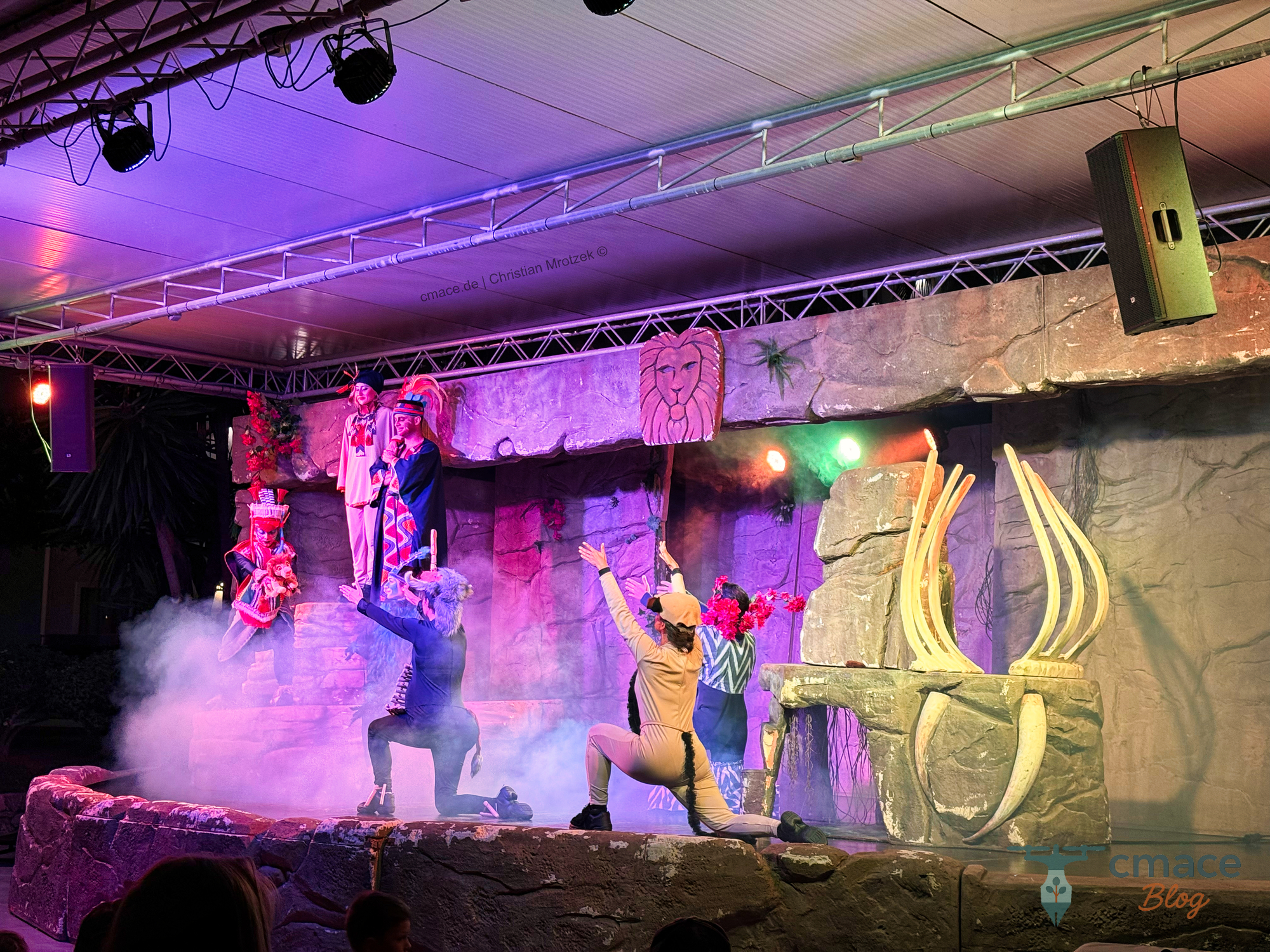 Das Animationsteam präsentierte eine beeindruckende „König der Löwen“-Show mit aufwändig gestalteter Bühnenkulisse und farbenfrohen Kostümen. Ein absolutes Highlight des Abends, das echtes Broadway-Feeling bot.