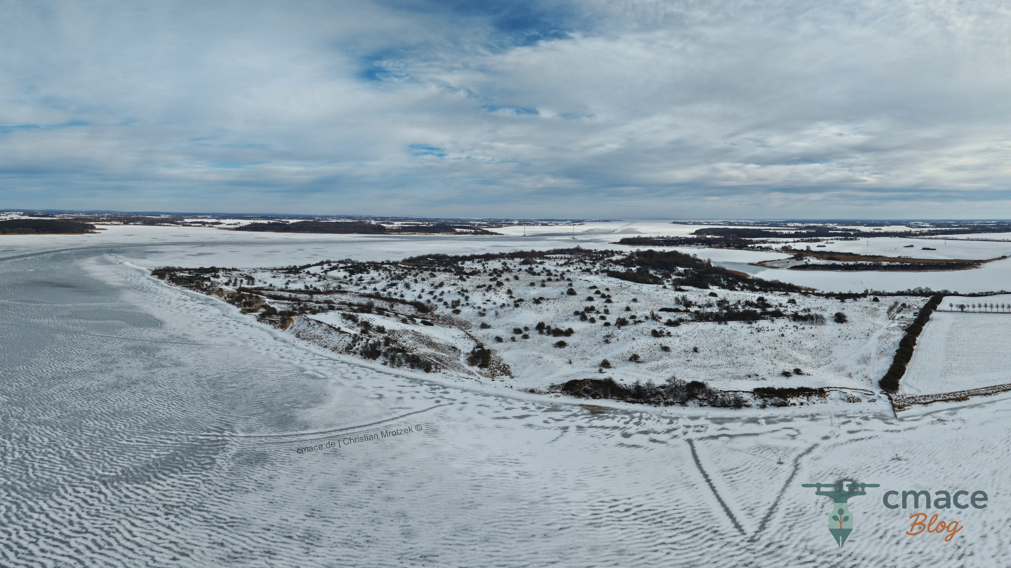 Die Höhe 23 in Devin wirkt wie eine verschneite Insel im weiten Eis – Bäume und Wege komplett zugedeckt, unter grauem Himmel. Perfektes Bild für den harten Winter-Februar 2026.