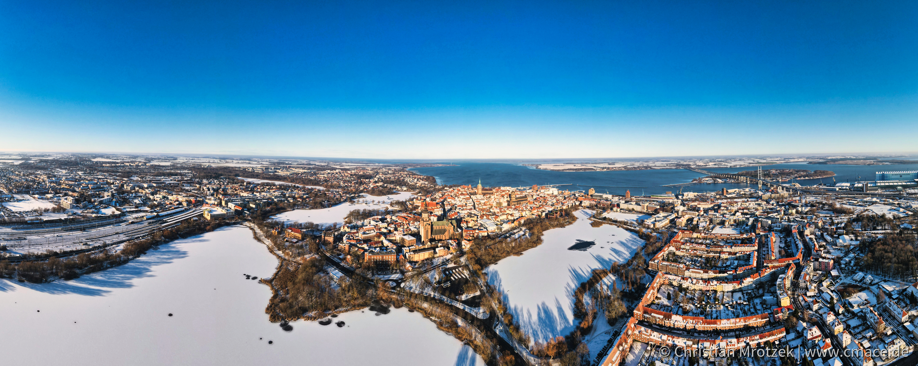 Luftaufnahme von Stralsund im Winter 2022 (Dezember).