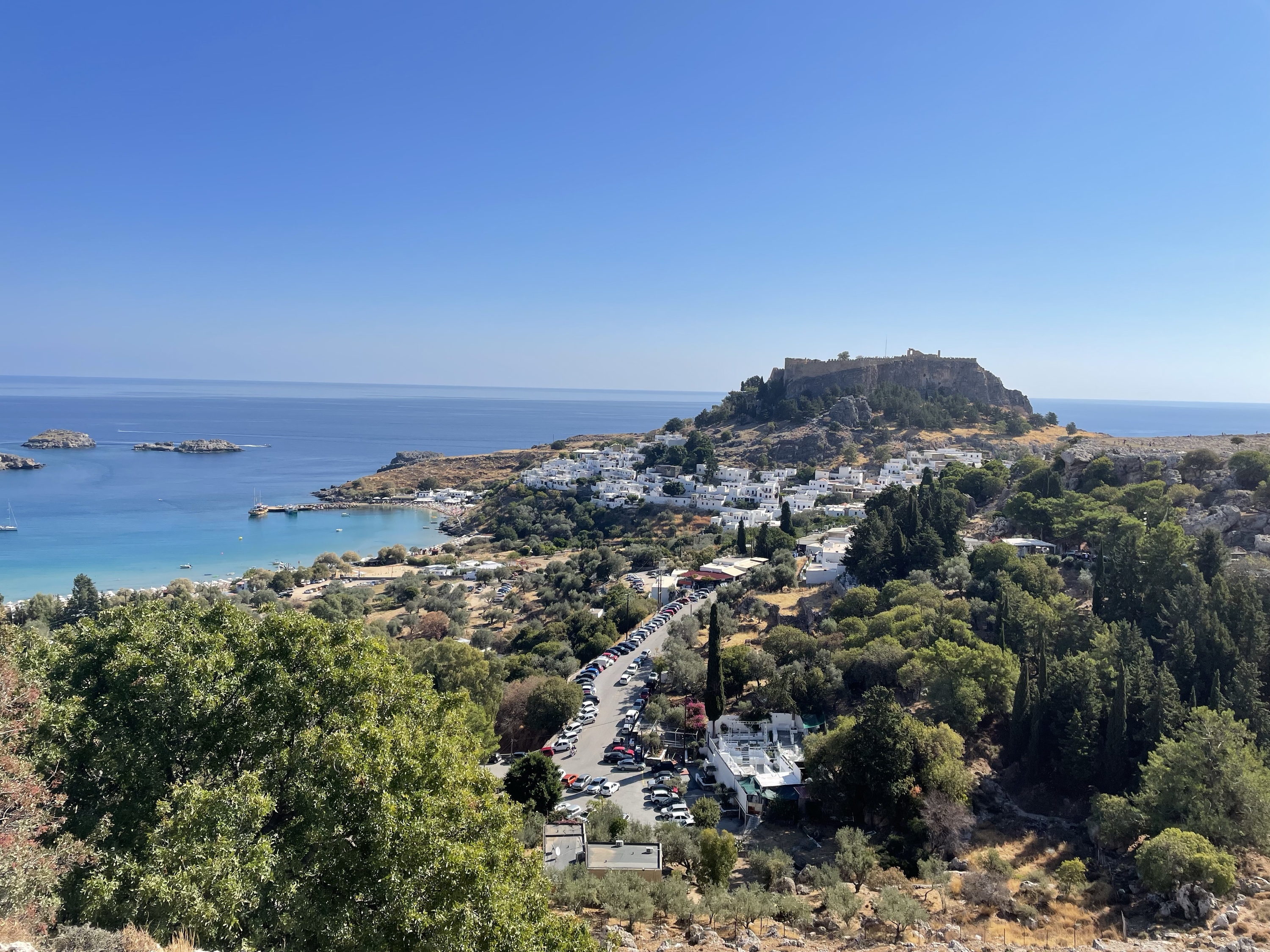 • Blick von der Akropolis auf Lindos