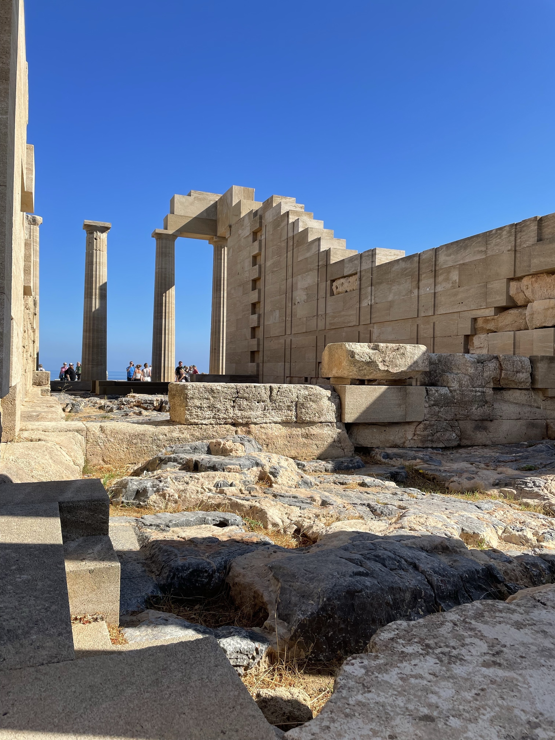 • Blick von der Akropolis von Lindos / Auf der Festung