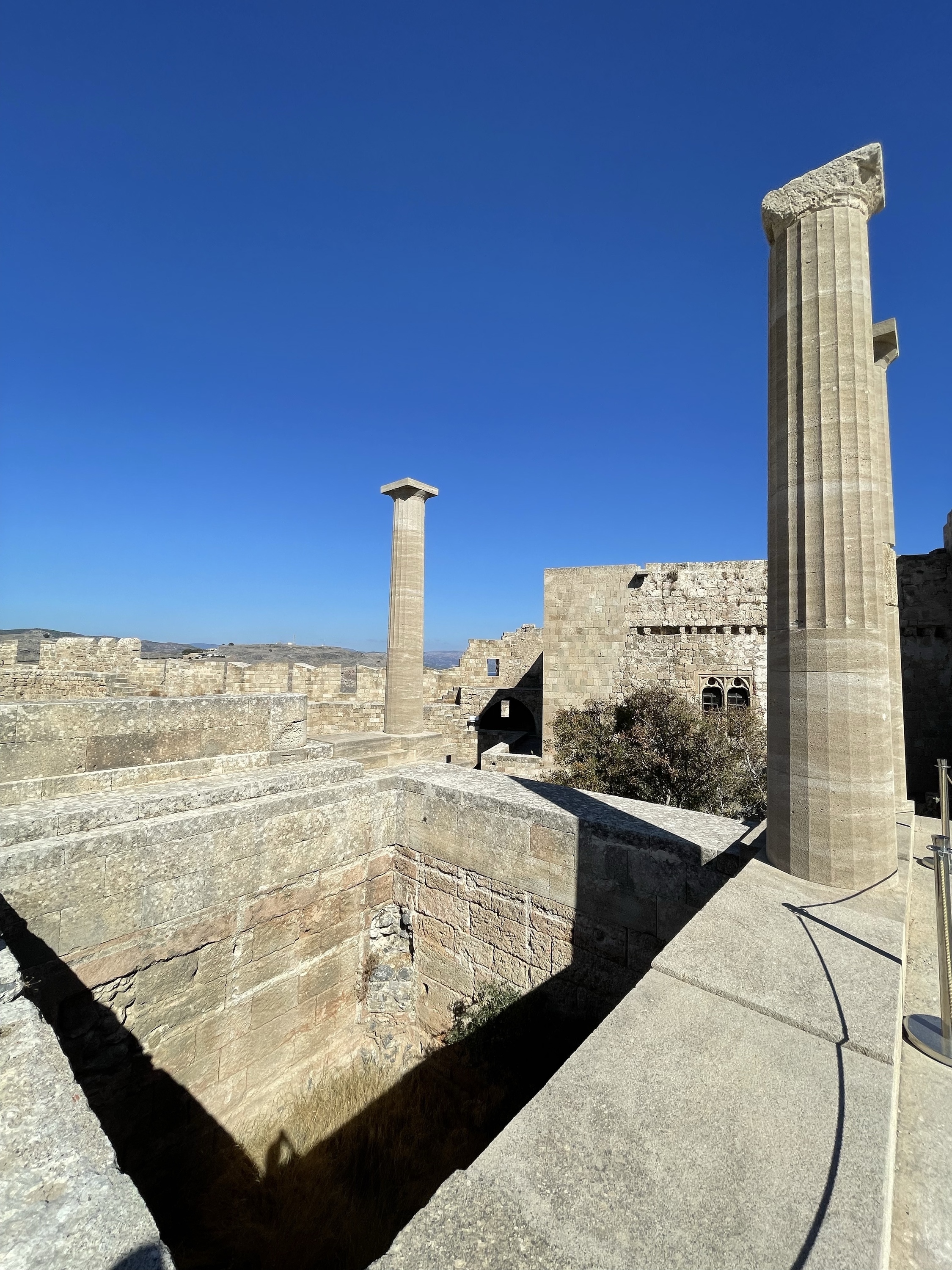 • Blick von der Akropolis von Lindos / Auf der Festung