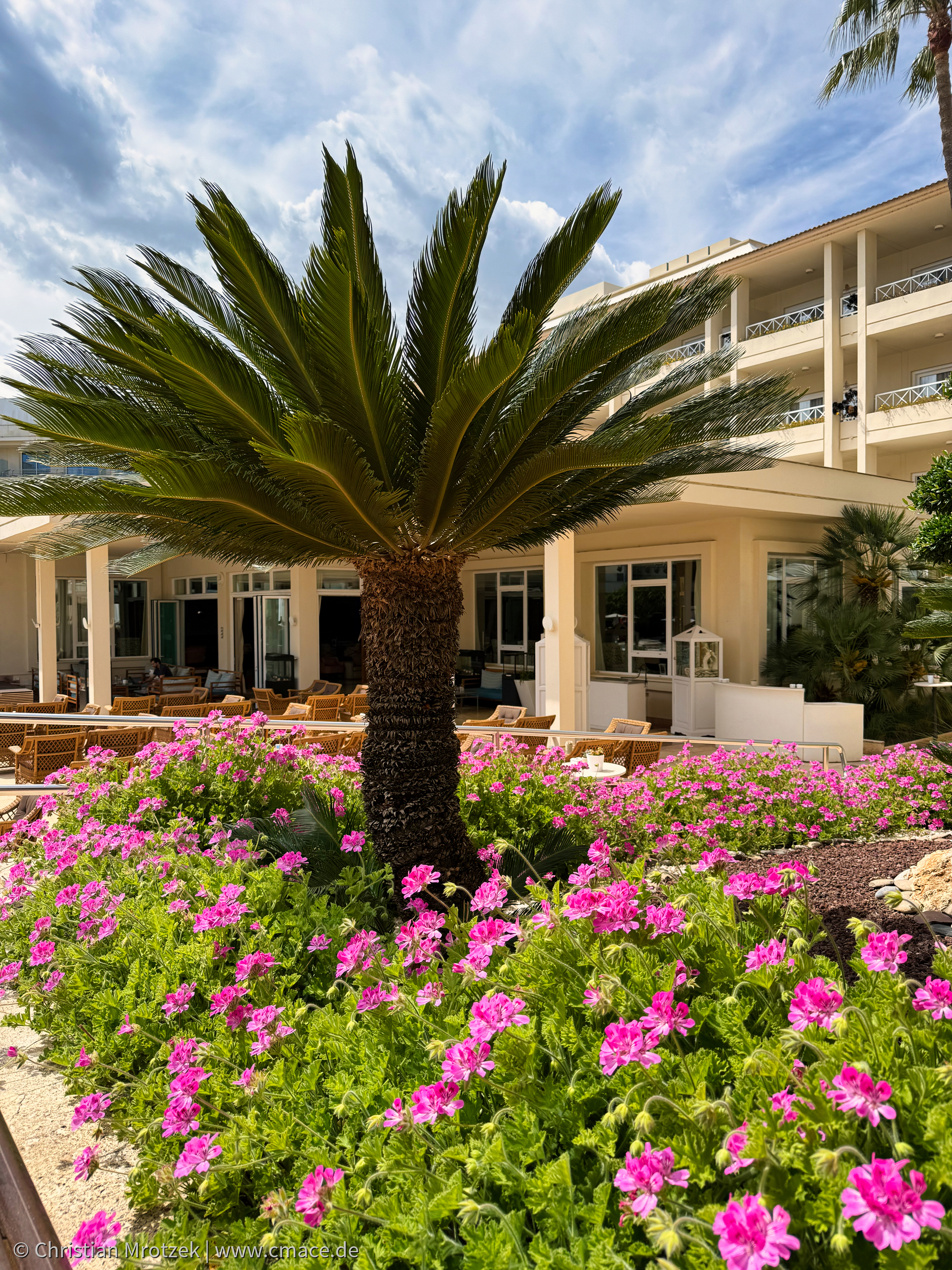 Die liebevoll angelegte Gartenanlage des Grupotel Parc Natural & Spa beeindruckt mit einer üppigen Blütenpracht und mediterranen Pflanzen. Palmen und farbenfrohe Blumenbeete sorgen für ein einladendes, tropisches Flair direkt vor der Hotelterrasse. Die gepflegte Bepflanzung ist nicht nur ein optisches Highlight, sondern auch Teil des nachhaltigen Gartenkonzepts des Hotels.